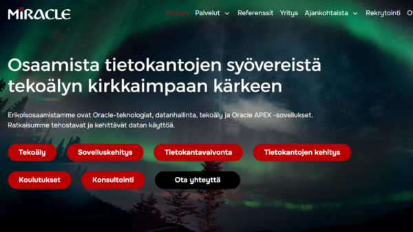 Miracle Finland perustettiin vuonna 2007 Helsingissä. Olemme erikoistuneet Oracle-teknologioihin, datanhallintaan, tekoälyyn ja Oracle APEX -sovelluksiin.