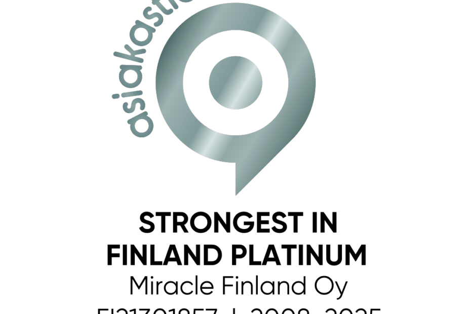 Miracle Finland has received the Strongest of Finland – Platinum certificate for 2025. The recognition is granted by Suomen Asiakastieto Oy to companies that have maintained a top credit rating (AAA/AA+) for at least three consecutive years.