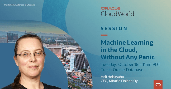 Miracle Finlandin Heli Helskyaho esiintyy Oraclen Cloudworldissa seuraavissa sessioissa: